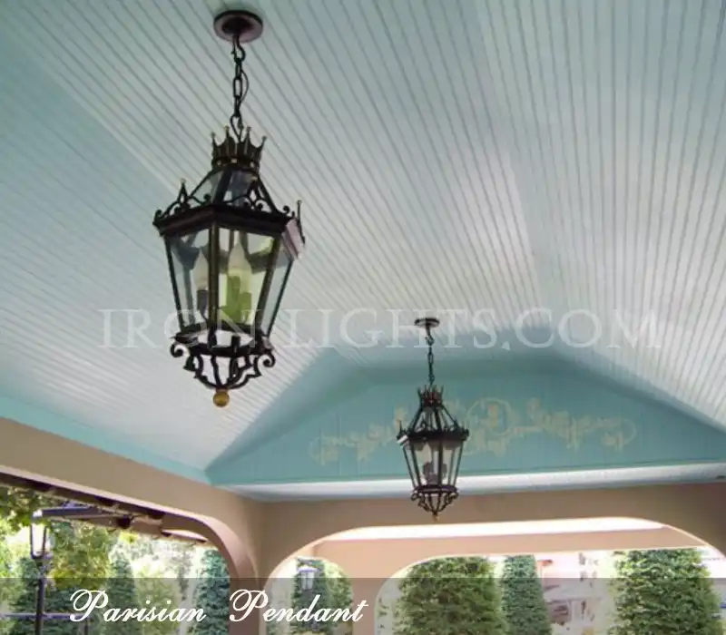 To explore the full range of color finishes and glass options, visit our “Final Touches” section. The Parisian pendant comes complete with 3 feet of handcrafted chain, canopy, and hardware. Elevate your outdoor aesthetics with this meticulously crafted and customizable French Chateau pendant light.